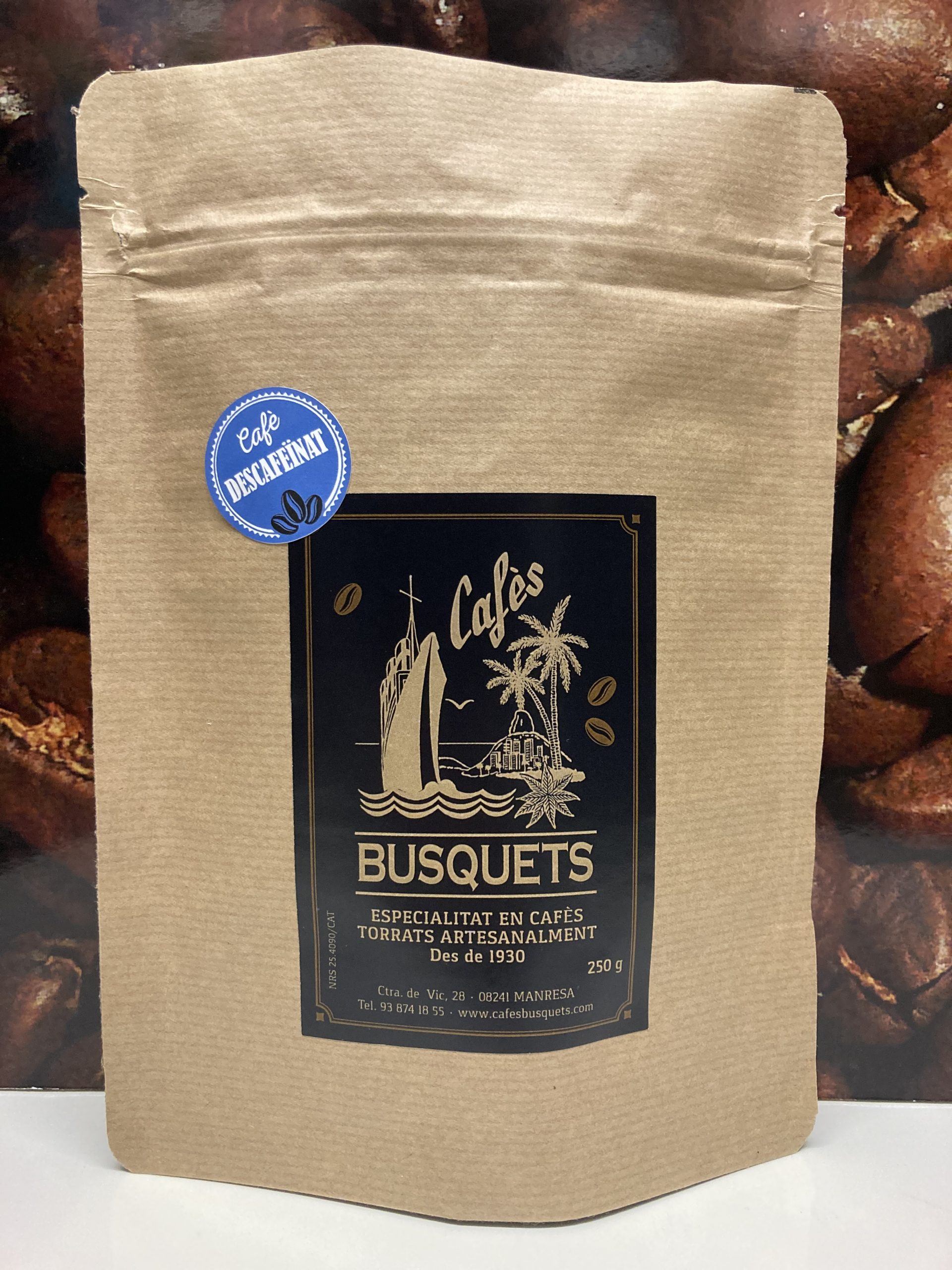 Procés Natural: Descafeïnat amb el mètode “Water Process”, utilitzant aigua de brollador natural per preservar la seva dolçor i cos sense químics.